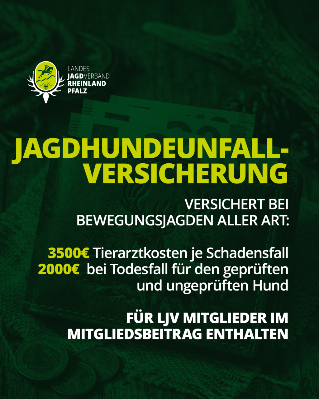 ✔️ Jagdhundeunfallversicherung – bis zu 3.500 € Tierarztkosten und 2.000 € Todesfall