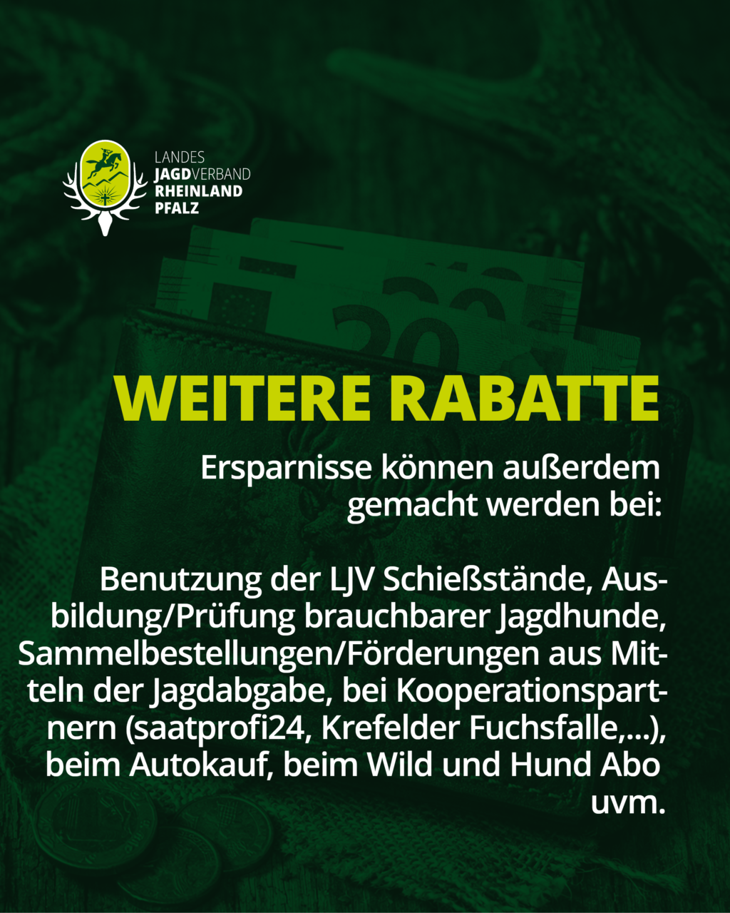 Der LJV vertritt die Jägerinnen und Jäger in Rheinland-Pfalz gesellschaftlich und politisch – aber Mitglieder profitieren auch finanziell: