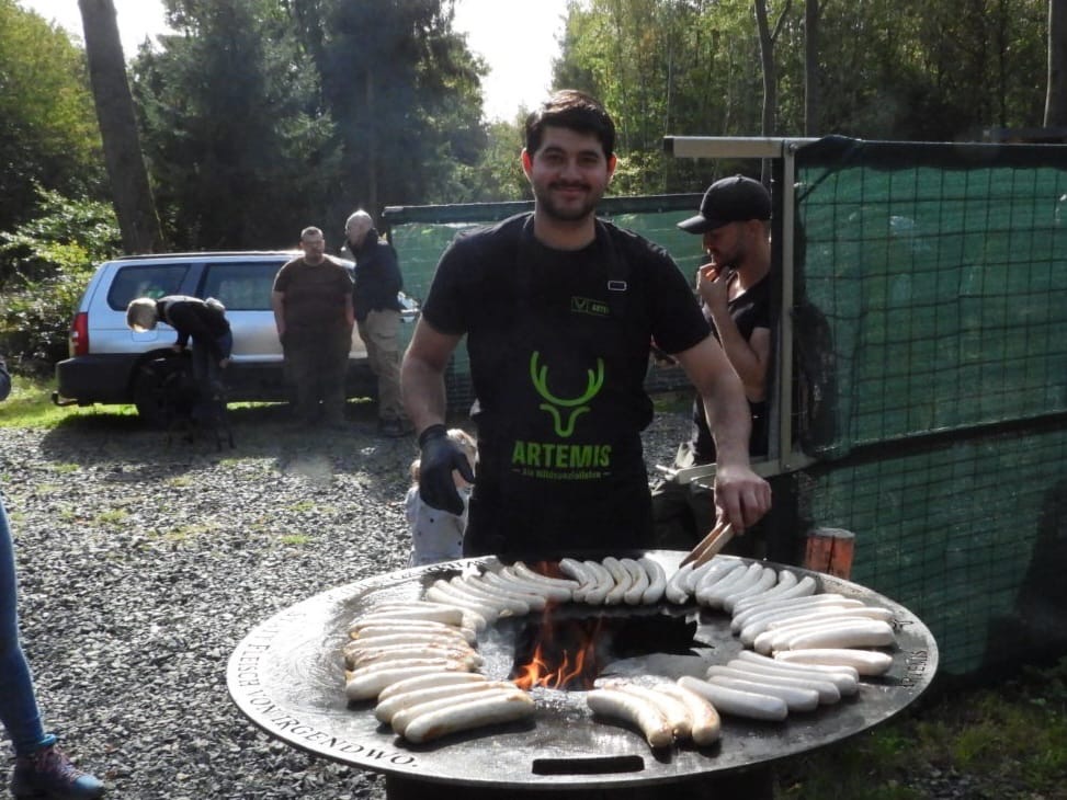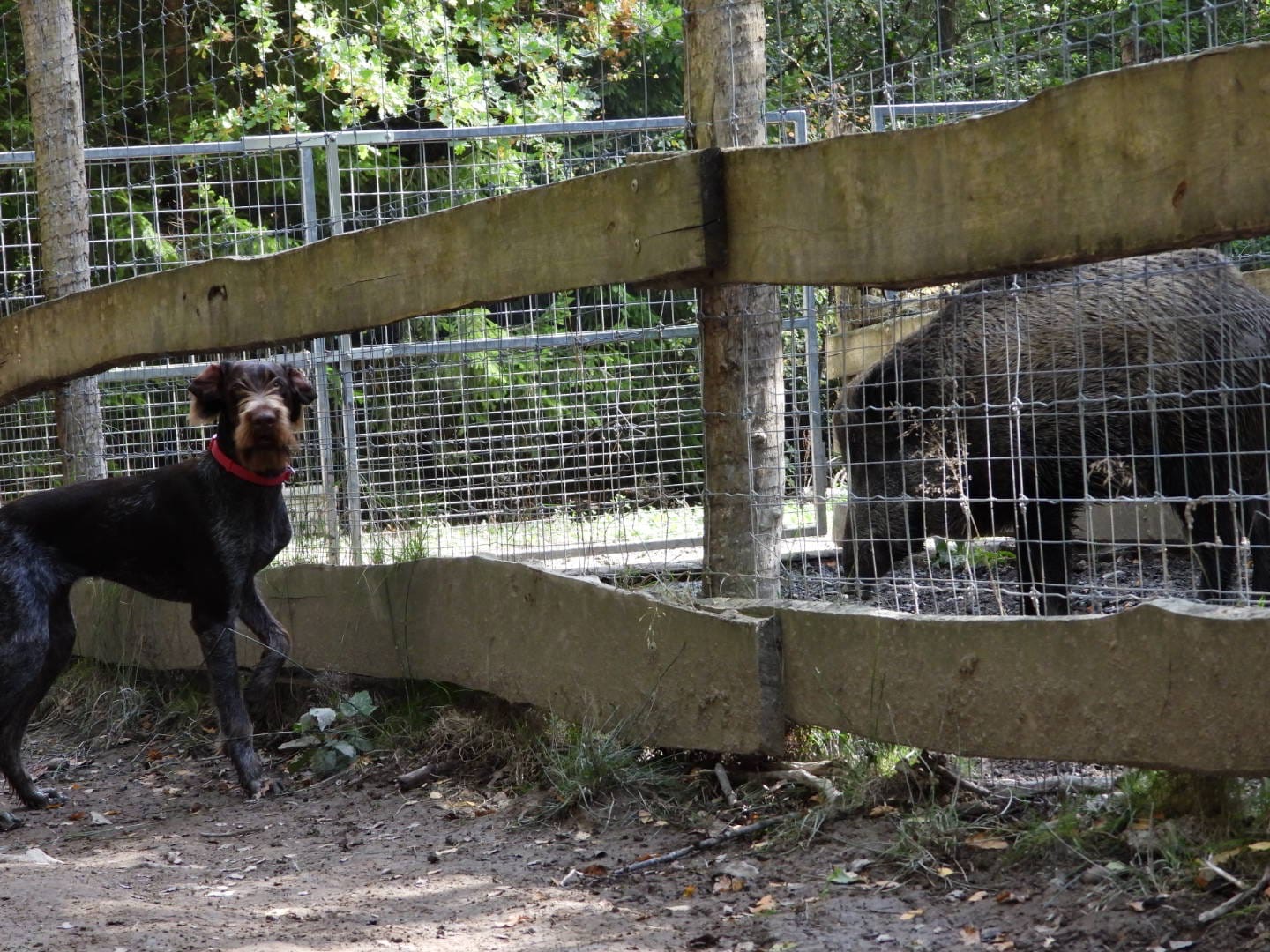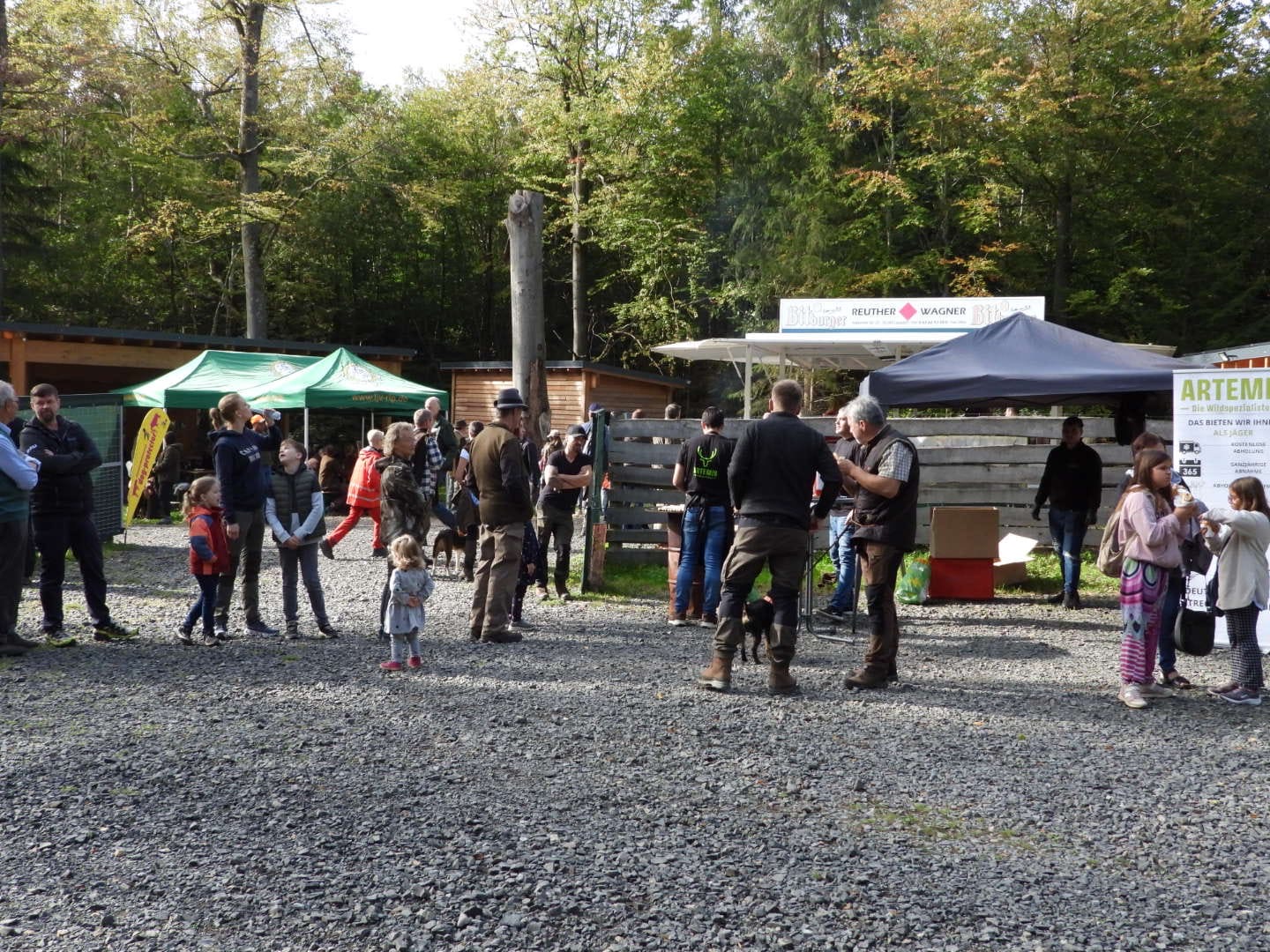 Ein Highlight war der 1. Tag der offenen Tür, am 8. Oktober, an dem wir eine Vielzahl von interessierten Menschen, Hundeführern und Hunden begrüßen konnten. Es wurden Gatterführungen sowie Vorführungen am Prägungskorridor angeboten und so konnten sich die Besucher einen Eindruck des Gatters, der Lebensweise der Sauen sowie deren Aufgabengebiet machen. Unterstützt wurde die Veranstaltung durch einige unserer Partner. dog-protector war vor Ort und bot die Möglichkeit, den Hund zu vermessen, um eine Schutzweste anfertigen lassen zu können. ARTEMIS bot Wildspezialitäten vom Grill an und Getränke konnten bei der Gattermannschaft erworben werden.
